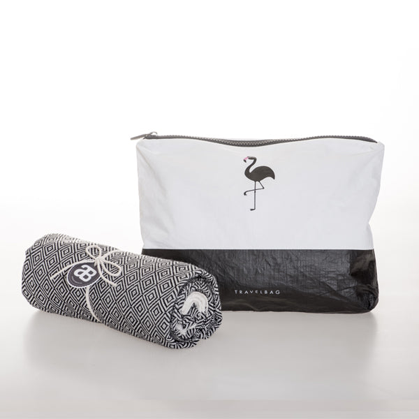 Geschenk-Set Diamond Flamingo: Hamamtuch im Set mit Travelbag