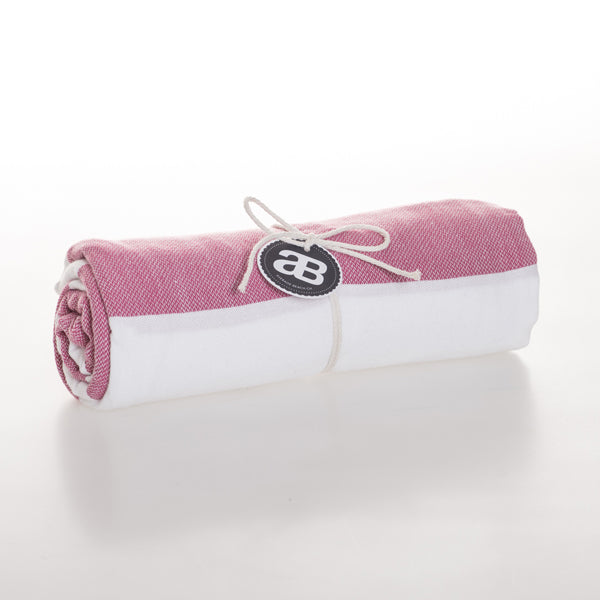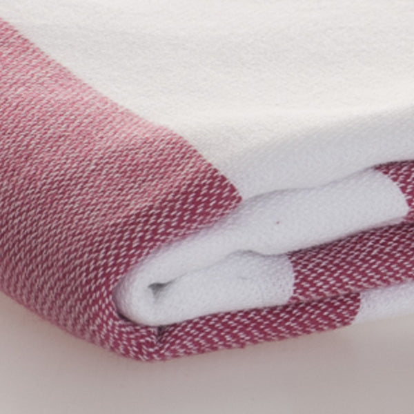 - pinkes Hamamtuch mit breiten, weissen Streifen