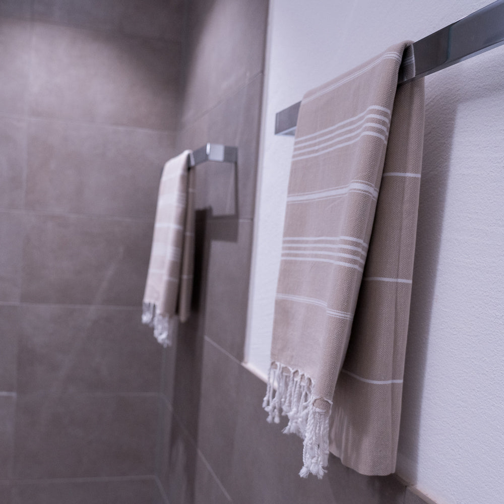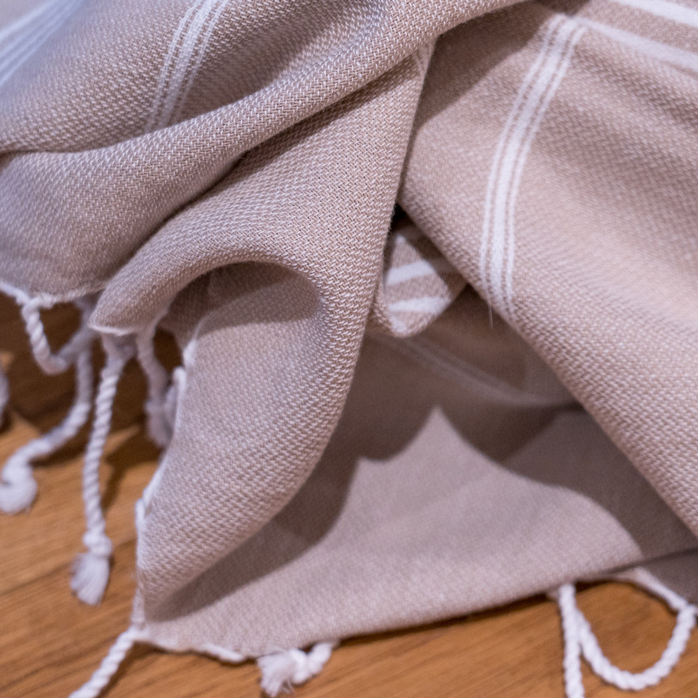 - Hamamtuch in beige mit weissen Streifen