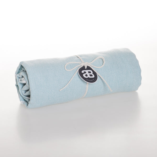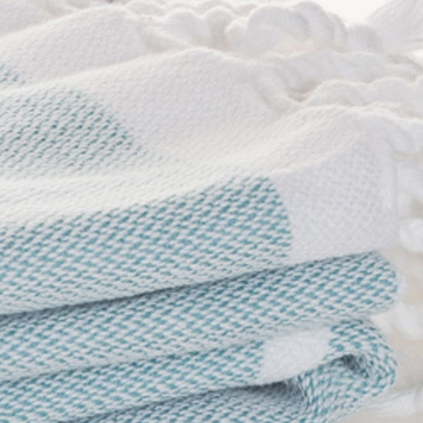 Hamamtuch Turquoise in türkis mit weissen Streifen. Das Turquoise eignet sich durch seine frische Farbe perfekt als Strandtuch oder Badetuch im Sommer.